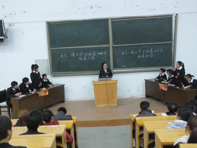 11月28日晚,我院第五屆大專辯論賽復賽第二場比賽在西階梯教室舉行。此次辯論賽,電信系作為正方以“讀大學生長進最大的是知識”為辯題,我系作為反方以“讀大學生長進最大的是人格”為辯題。雙方就此展開了激烈的辯論。