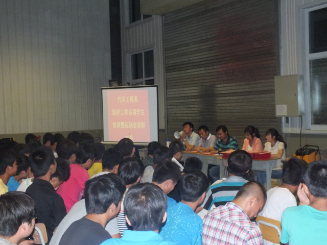為迎接6月8號至10號全國高職院校人才培養(yǎng)工作評估和表彰剛剛結(jié)束的運(yùn)動(dòng)會(huì)獲獎(jiǎng)?wù)?。我系?013年6月2日晚8:30在汽車實(shí)訓(xùn)中心舉行了“汽車工程系迎評工作后期學(xué)生培訓(xùn)暨運(yùn)動(dòng)會(huì)表彰大會(huì)”,我系學(xué)生工作負(fù)責(zé)人許成林老師、全體班主任和全系學(xué)生參加了本次培訓(xùn)暨表彰大會(huì)。