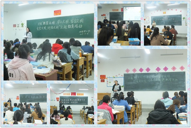 各班班會從什么是文明講起,聯(lián)系生活實際,講述校園文明、家庭文明和社會文明的重要性。各班主任首先向同學(xué)們闡述了對于當代大學(xué)生來說,文明修身和專業(yè)學(xué)習(xí)同等重要,專業(yè)學(xué)習(xí)主要培養(yǎng)大學(xué)生的科學(xué)精神,而文明修身主要培養(yǎng)大學(xué)生的人文精神,二者缺一不可。通過講述身邊同學(xué)的故事,指出校園、家庭和社會上存在的不文明、不和諧現(xiàn)象,要求同學(xué)們對自身言行舉止進行約束,共同攜手,提高自身文明行為,提升大家的思想道德和人文素質(zhì)。隨后,由同學(xué)們就“文明行為”發(fā)表了自己的看法,大家由主題聯(lián)想到自己身邊的一些不文明的行為,并就這些不文明行為發(fā)表了自己觀點,同時,同學(xué)們就如何提高自身道德素養(yǎng)、如何更好地做到文明修身提出了自己的建議和意見。經(jīng)過同學(xué)們的積極發(fā)言和認真討論,大家認為只有文明的個人才會有文明的班級團體,才會有文明的校園,才會有和諧的社會。
