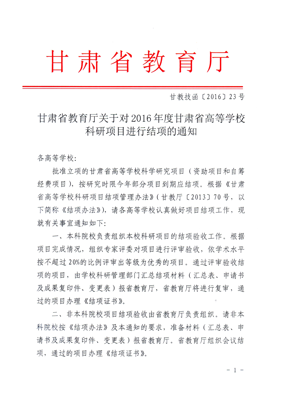 附件: 1.甘肅省高等學(xué)校科研項(xiàng)目結(jié)項(xiàng)管理辦法