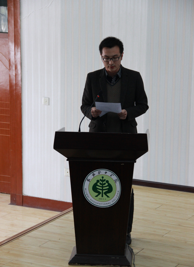 王永緒副院長宣讀了省教育《關于在全省高校開展“大學生思想政治教育百千萬工程”的意見》。