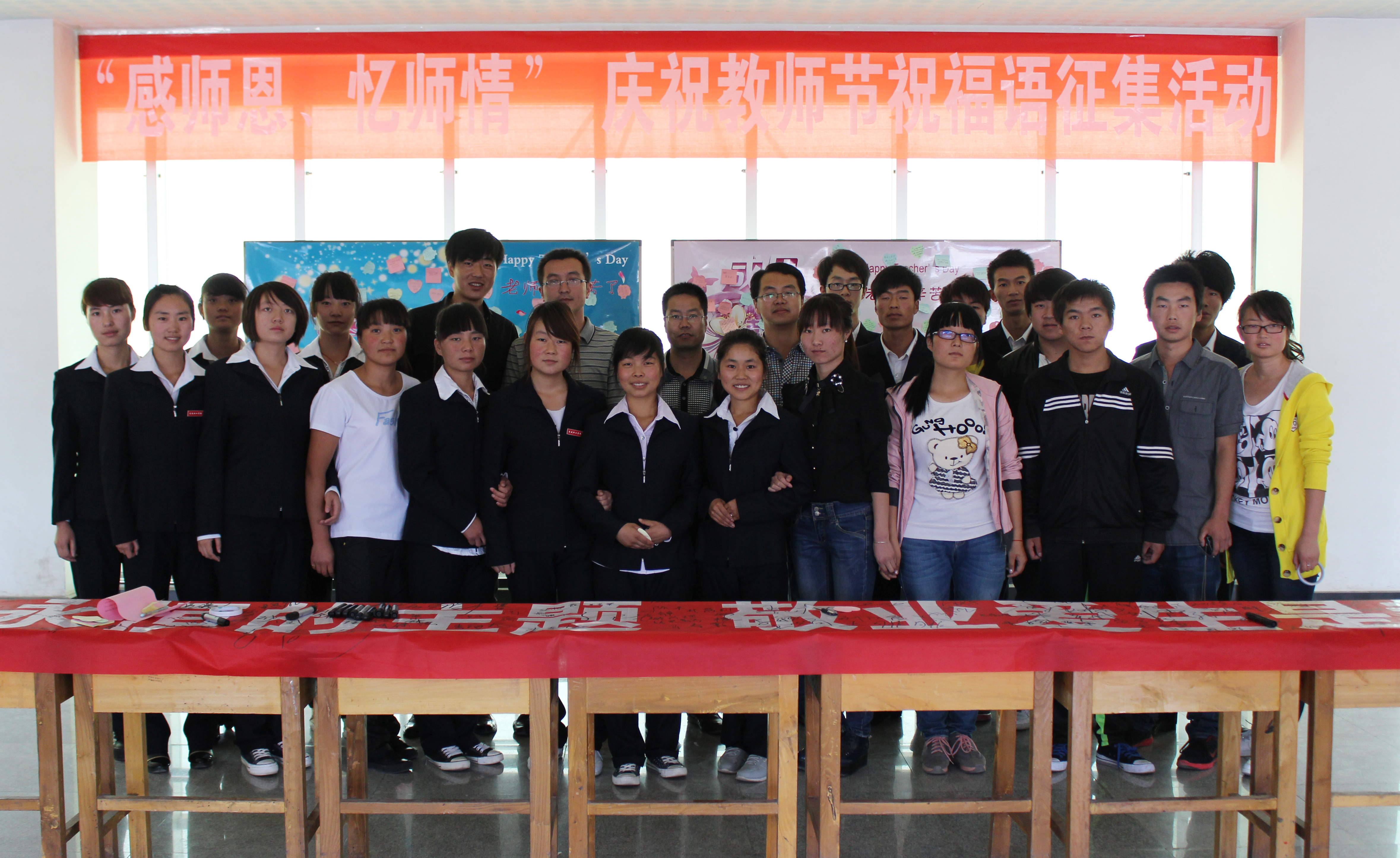 希望通過這樣的活動,讓每一個(gè)人尊重老師,重視教育,讓校園彌漫感恩的情緒,讓高尚的尊師之風(fēng)在每一個(gè)職院人中傳遞,為學(xué)院的內(nèi)涵文化建設(shè)增添光彩。