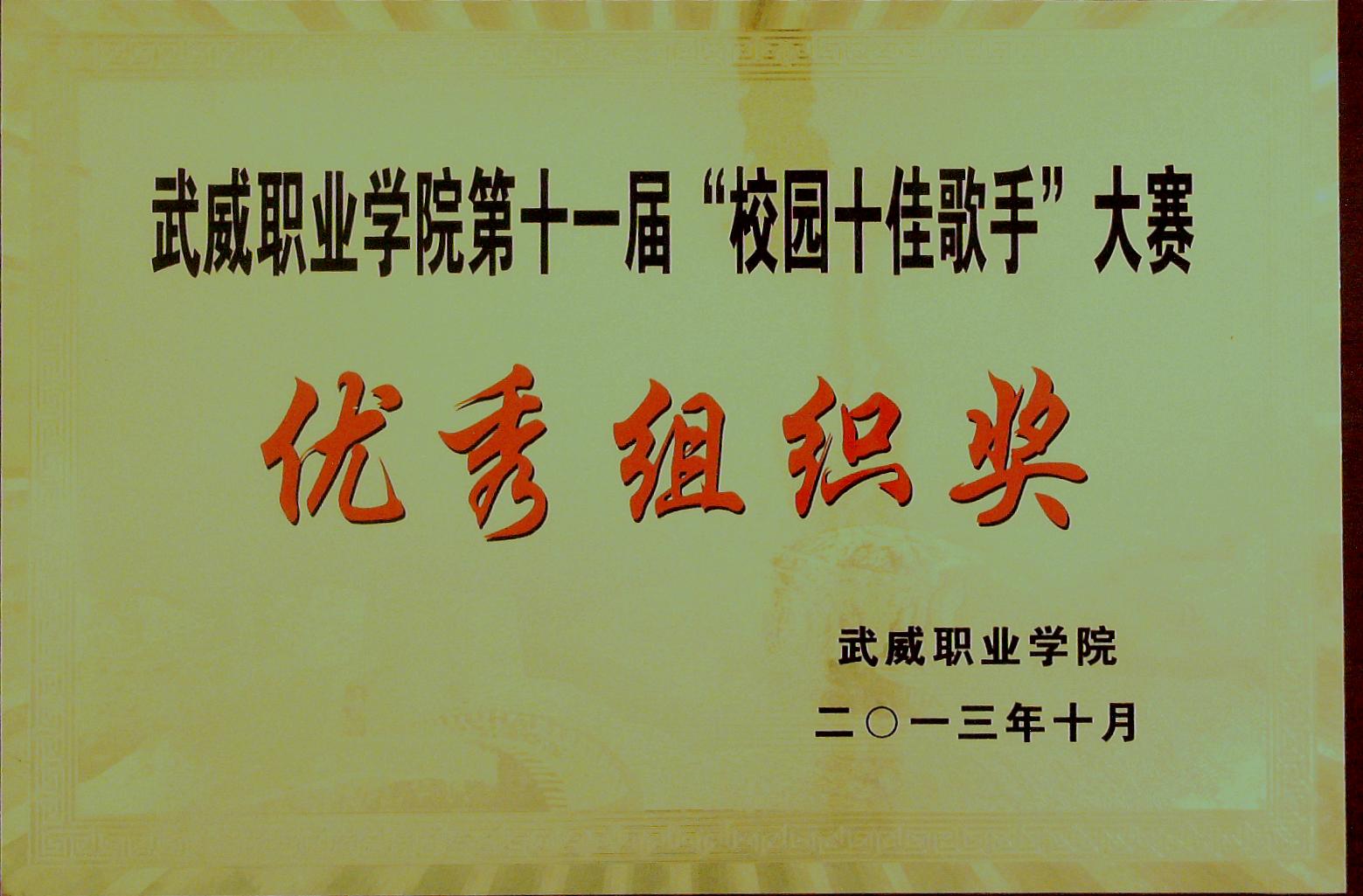 “校園十佳歌手”大賽優(yōu)秀組織獎