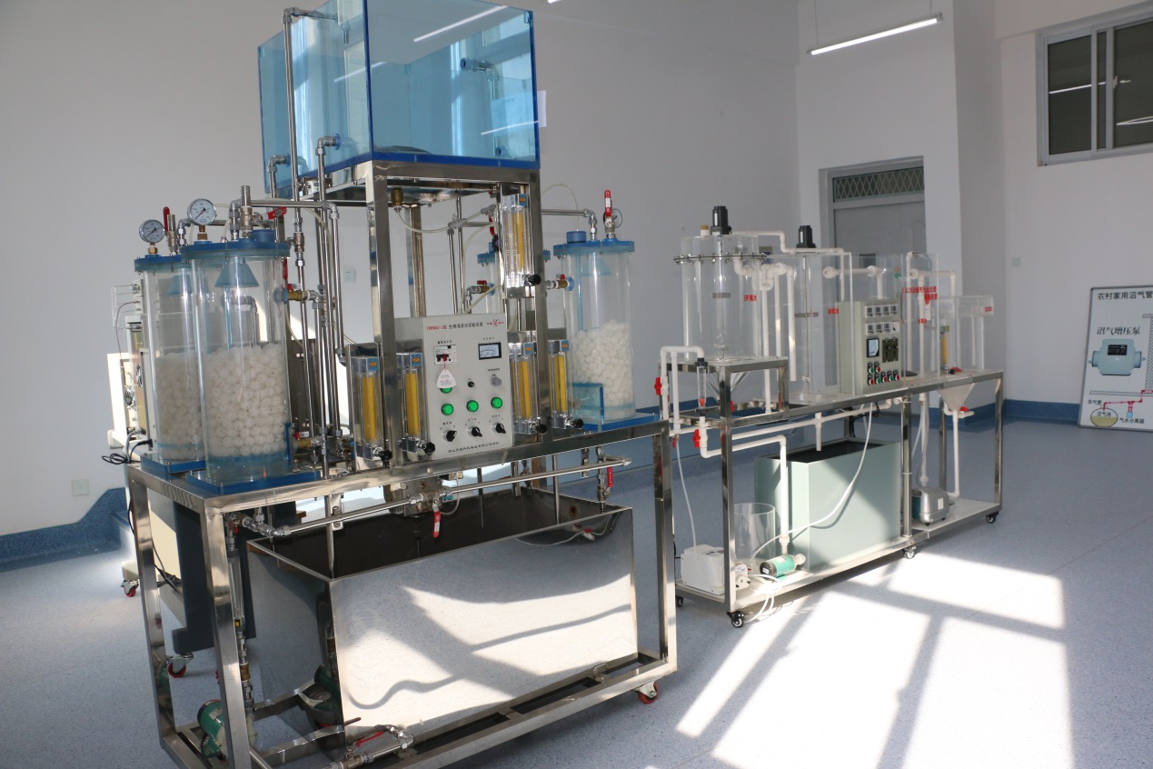 實訓(xùn)功能:本實訓(xùn)室擁有生物滴濾池實驗裝置、完全混合式活性污泥法實驗裝置、沼氣發(fā)酵罐(四樓樓頂)、A20法城市污水處理模擬設(shè)備共9套。主要服務(wù)課程為《農(nóng)業(yè)微生物》、《沼氣生產(chǎn)利用技術(shù)》、《生物質(zhì)能利用技術(shù)》、《農(nóng)業(yè)環(huán)境監(jiān)測技術(shù)》。