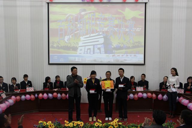 競賽結(jié)束后,王院長揭曉了本次比賽的全部獎(jiǎng)項(xiàng),并對(duì)比賽中各代表隊(duì)的不俗表現(xiàn)給予了高度評(píng)價(jià)。他認(rèn)為經(jīng)濟(jì)管理系本次“百科知識(shí)競賽”集知識(shí)性與趣味性于一體,既豐富了學(xué)生的課余生活又拓寬了學(xué)生的知識(shí)面,在大學(xué)校園中非常必要,以后要多舉辦類似的活動(dòng)。隨后,經(jīng)管系黨總支白書記作了總結(jié)講話,白書記首先對(duì)本次競賽取得圓滿成功表示祝賀,向在百忙之中抽出時(shí)間來參加活動(dòng)的領(lǐng)導(dǎo)及老師表示衷心的感謝,并對(duì)本次組委會(huì)師生付出地辛勤勞動(dòng)予以肯定!白書記希望,全體同學(xué)能以此次知識(shí)競賽活動(dòng)為契機(jī),勤奮學(xué)習(xí)、苦練技能,奮力拼搏,成為優(yōu)秀的應(yīng)用性人才。