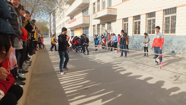 隨著蔡柱山宣布運(yùn)動(dòng)會(huì)正式開始的指令發(fā)出,拔河決賽立刻在熱烈的氣氛中拉開了架勢,進(jìn)入決賽的班級(jí)在裁判的指導(dǎo)下迅速進(jìn)入指定位置,各班同學(xué)紛紛加油助威,運(yùn)動(dòng)場上氣氛頓時(shí)被調(diào)動(dòng)起來了。根據(jù)賽程安排,籃球賽、“15人跳繩”、乒乓球賽等集體和單人的各項(xiàng)比賽依次有序進(jìn)行,特別是跳繩比賽,參與面廣,同學(xué)們都積極投入其中,感受到運(yùn)動(dòng)的樂趣和團(tuán)結(jié)的力量。
