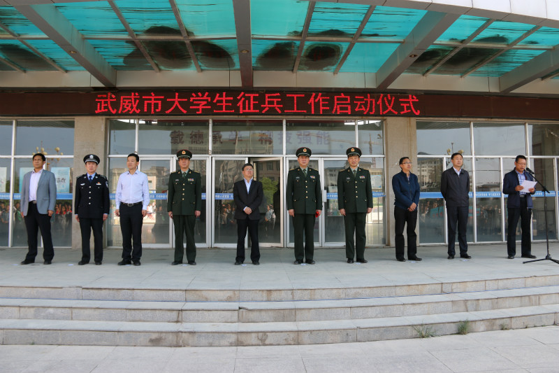 5月15日下午,武威市大學生征兵工作啟動儀式在學院尚德樓北廣場隆重舉行。武威市政府副市長胡細如和武威軍分區(qū)司令員萬發(fā)中出席啟動儀式并做了講話,武威軍分區(qū)政委周小平、參謀長孫武奇,市委宣傳部副部長陳萬能,涼州區(qū)委常委、常務(wù)副區(qū)長高加志,市教育局督學張應(yīng)偉、市民政局雙擁辦副主任楊光鈺、市公安局副調(diào)研員陳振亞出席啟動儀式。武威日報社、廣播電視臺的媒體朋友和我院1000多名師生代表參加啟動儀式,學院副院長王永緒主持啟動儀式。