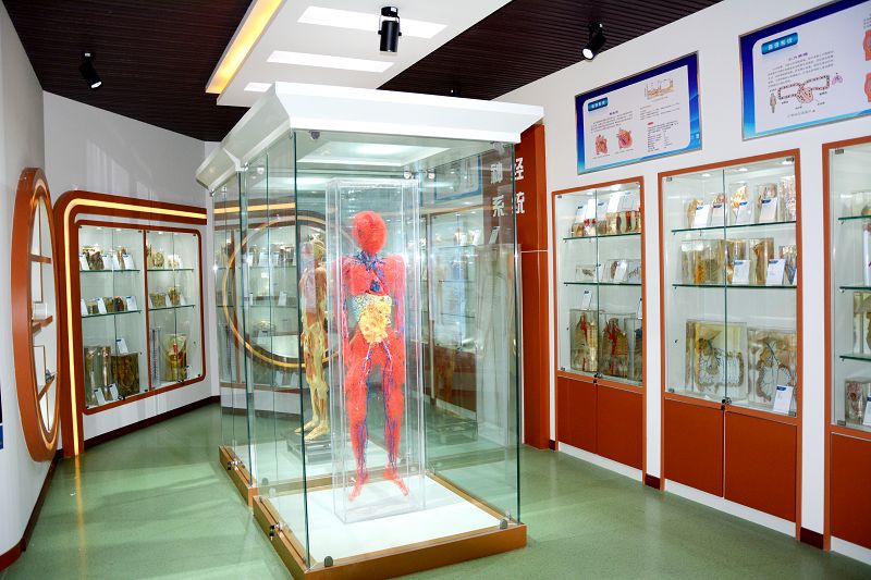 “人體生命科技館”占地210平米,共設(shè)置系統(tǒng)解剖陳列標(biāo)本266件,局部解剖陳列標(biāo)本166件,鑄形標(biāo)本31件,斷面標(biāo)本3件,護(hù)理應(yīng)用解剖標(biāo)本26件,解剖塑化標(biāo)本5件,充分展現(xiàn)了從骨骼、關(guān)節(jié)、肌肉、臟器、血液系統(tǒng)、神經(jīng)系統(tǒng)的人體各個部分,對于護(hù)理等醫(yī)學(xué)類專業(yè)學(xué)生加強(qiáng)對人體結(jié)構(gòu)了解起到了重要作用。