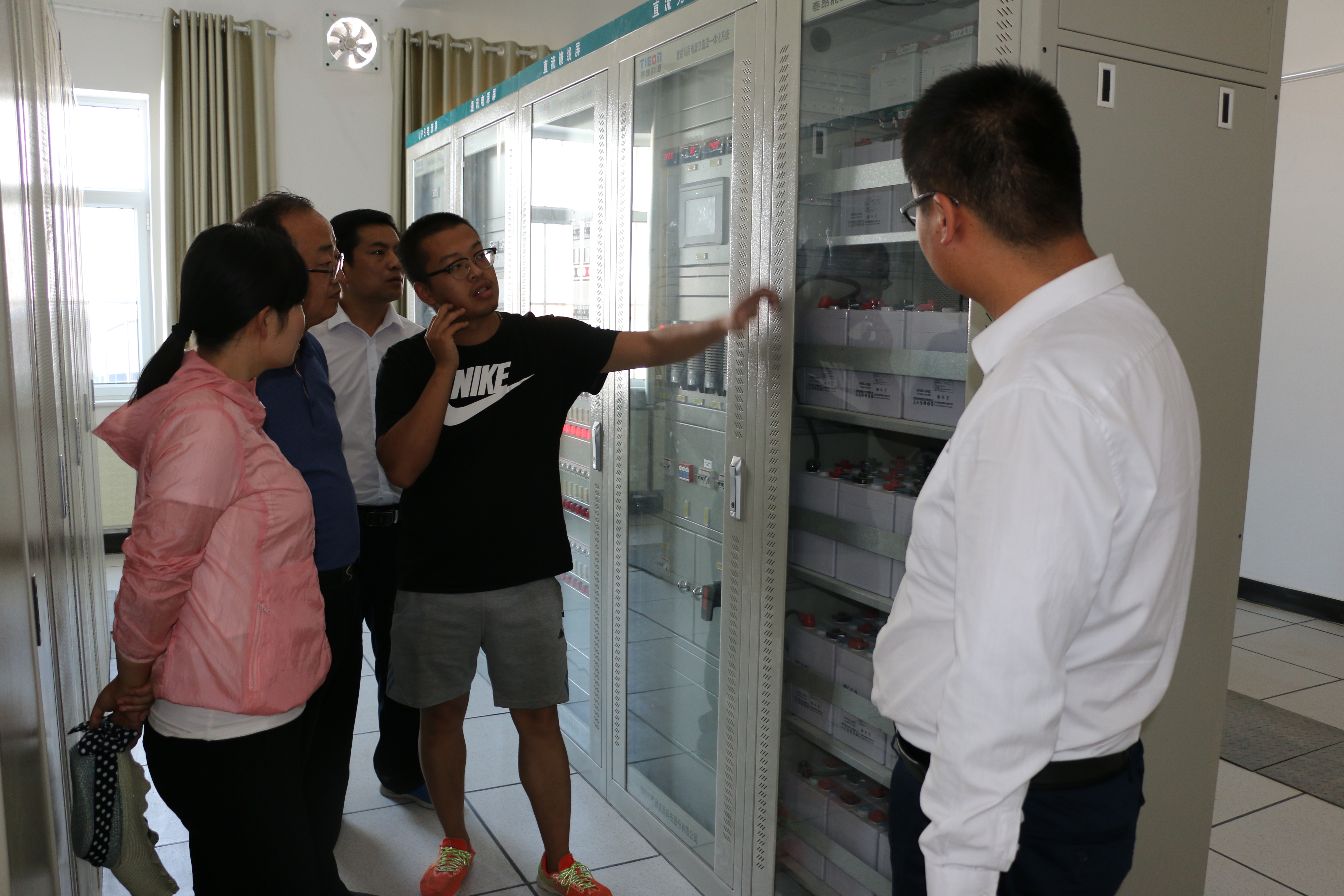全體教師在電站技術(shù)人員帶領(lǐng)下,依次深入值班調(diào)度室、控制柜室、SVG室(無功功率補(bǔ)償)、110升壓變電站、開關(guān)柜室以及光伏陣列進(jìn)行觀摩學(xué)習(xí),全體教師在調(diào)度室查看監(jiān)控系統(tǒng),查看分析設(shè)備運(yùn)行情況等,通過現(xiàn)場培訓(xùn)學(xué)習(xí),使老師們近距離熟悉了光伏支架,組件陣列、逆變器、控制器、匯流箱、配電柜等設(shè)備的安裝施工,實(shí)踐學(xué)習(xí)了光伏系統(tǒng)集成設(shè)計(jì)以及并網(wǎng)技術(shù)等,特別是對光伏電站運(yùn)行安全操作規(guī)程進(jìn)行了系統(tǒng)掌握。