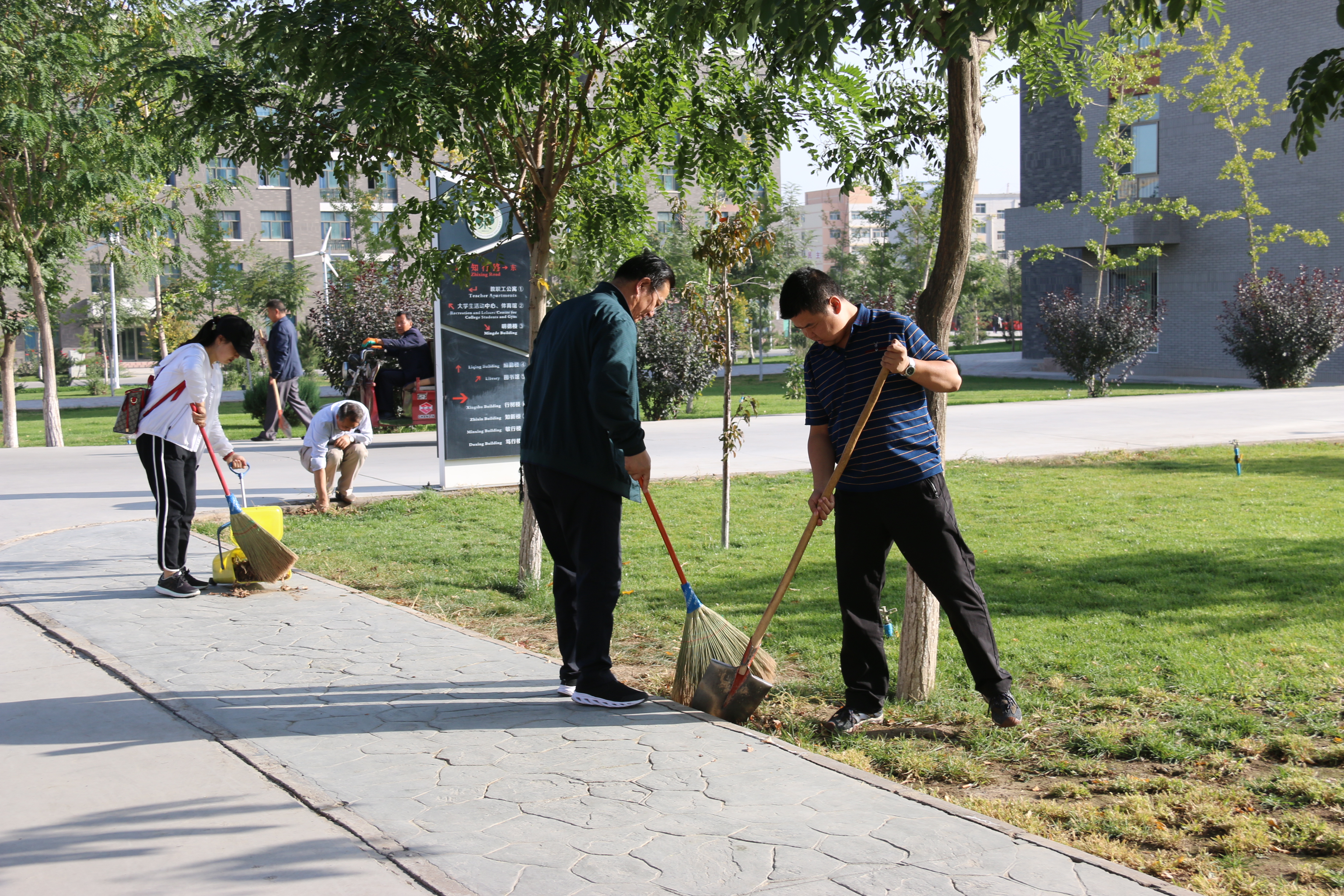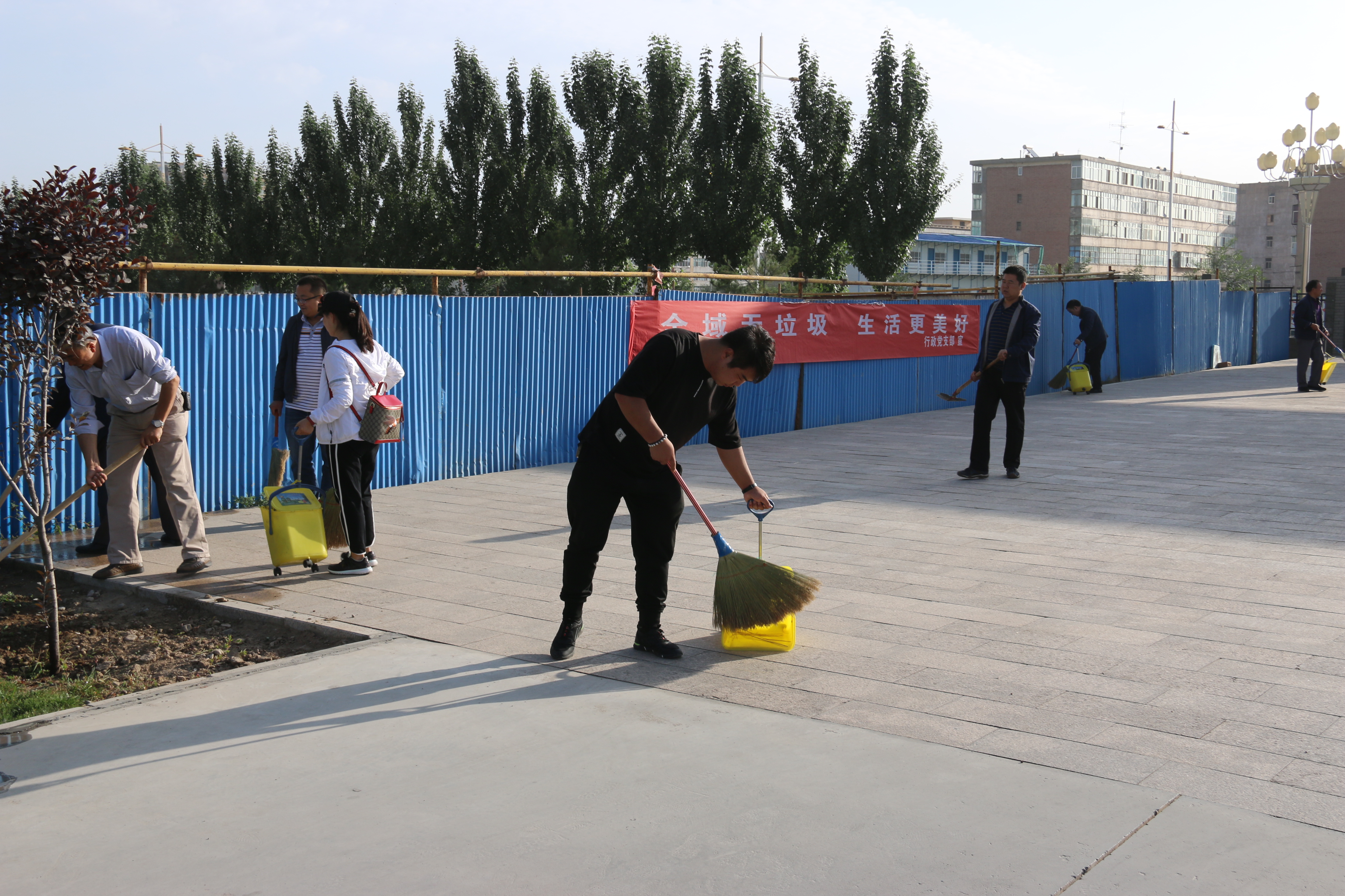 活動現(xiàn)場,大家紛紛拿起掃把、鐵鍬、簸箕、夾子等衛(wèi)生清潔工具,按照事先劃分的區(qū)域和責任分工對校園內(nèi)主要道路、樓宇四周、過道、樹溝、草坪、花圃等地的囤積垃圾、枯枝落葉、建筑垃圾等進行了集中掃除,特別是對一些角落堆積的垃圾進行徹底清理。