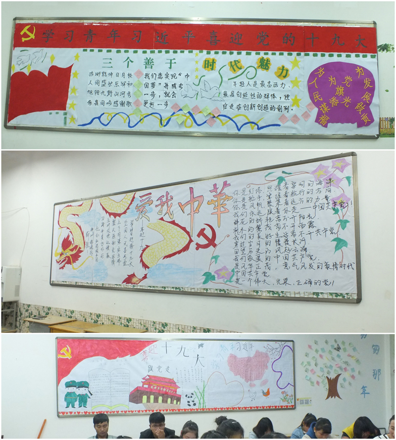 各班團(tuán)支部緊緊圍繞“學(xué)習(xí)青年習(xí)近平,喜迎黨的十九大”這一主題,精心的設(shè)計(jì),圖文并茂,內(nèi)容豐富,制作完成了形式多樣的黑板報(bào)。由系團(tuán)總支對(duì)各班團(tuán)支部制作的黑板報(bào)進(jìn)行了檢查評(píng)比。經(jīng)過現(xiàn)場打分,最終評(píng)定16級(jí)中藥學(xué)2班、16級(jí)藥學(xué)3班和17級(jí)中藥學(xué)2班為黑板報(bào)制作優(yōu)秀團(tuán)支部。