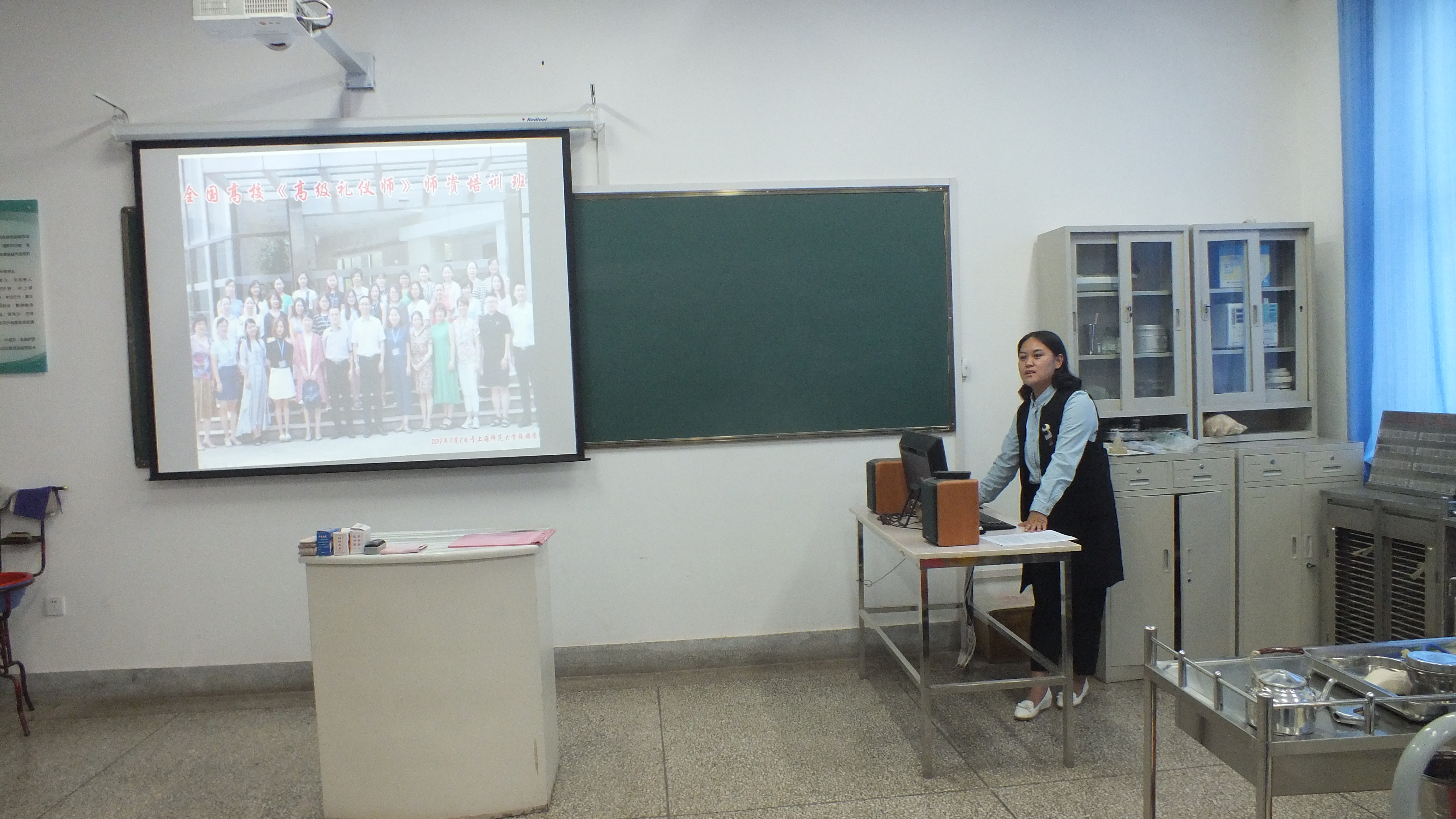 9月19號下午,護理系相關(guān)外出培訓(xùn)教師代表在做卓行樓308進行匯報交流。去上海參加全國禮儀師資培訓(xùn)班的楊曉玲老師主要針對護理禮儀及日常生活禮儀展開交流,使大家明白生活處處皆禮儀,給大家上了一堂生動的禮儀課。