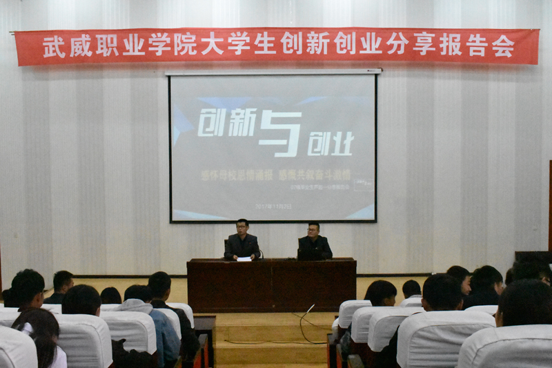 為進(jìn)一步提升我院大學(xué)生的綜合素質(zhì)和創(chuàng)新、創(chuàng)業(yè)能力,培養(yǎng)大學(xué)生的創(chuàng)業(yè)意識(shí)、思維和技能,增強(qiáng)大學(xué)生的專業(yè)信心及創(chuàng)業(yè)信心,以創(chuàng)業(yè)帶動(dòng)就業(yè),正確引導(dǎo)同學(xué)們以健康積極的心態(tài)開展創(chuàng)新、創(chuàng)業(yè)及就業(yè)活動(dòng)。2017年11月2日,我院07級(jí)優(yōu)秀畢業(yè)生蘆超創(chuàng)業(yè)就業(yè)分享報(bào)告會(huì)在學(xué)院正德廳隆重舉行。本次大會(huì)由創(chuàng)新創(chuàng)業(yè)中心承辦,我院07級(jí)畢業(yè)生蘆超,現(xiàn)任甘肅擺渡人文化發(fā)展有限公司總經(jīng)理、武威職業(yè)學(xué)院大學(xué)生創(chuàng)業(yè)導(dǎo)師、共青團(tuán)創(chuàng)業(yè)宣講團(tuán)成員、甘肅菜鳥電子商務(wù)有限公司特聘講師,應(yīng)邀出席并做了精彩的報(bào)告。全院師生二百多人參加了此次大會(huì),報(bào)告會(huì)由雙創(chuàng)中心胡建宏老師主持。